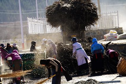 我想,擁有了清新質(zhì)樸的鄉(xiāng)野日子,就可以靜下心來(lái)。而事實(shí)上還是無(wú)法安下心來(lái),一面想著山林的神秘,一面想著城市的熱鬧。寂寞無(wú)聲地穿過(guò)巷道,那個(gè)向陰的小二樓一如既往地昏暗。拉開麻布的窗簾,大多時(shí)候我會(huì)看見走在巷道里的老老少少、男男女女,他們背著柴禾,滿帶笑容,相互致意。他們的日子似乎充滿了無(wú)盡的樂(lè)趣,也充滿了幸福和陽(yáng)光。上午十點(diǎn)的時(shí)候,陽(yáng)光會(huì)滑過(guò)窗臺(tái),轉(zhuǎn)瞬即逝,但陽(yáng)光的確向小二樓袒露了它的無(wú)能為力。另一張桌子擺放著廚具,廚具上每天都會(huì)有新的灰塵堆積,盡管如此,它們依然發(fā)出青稞的馥郁之氣。