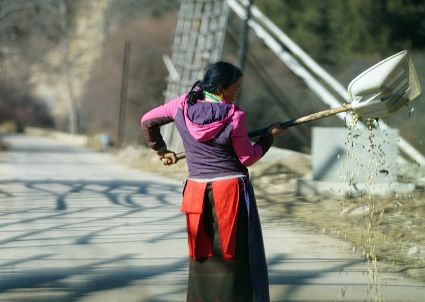 陽(yáng)光溢彩的早晨,我已經(jīng)從對(duì)面山上的柏木林里回來(lái)了。中午時(shí)分,村里的人們又開始打碾豆子了,那場(chǎng)面十分誘人。感覺上我已經(jīng)離開村子很遠(yuǎn)了,而在車巴河岸邊,我又一下回到了村子。勞動(dòng)的人,那個(gè)不冰清玉潔呀!