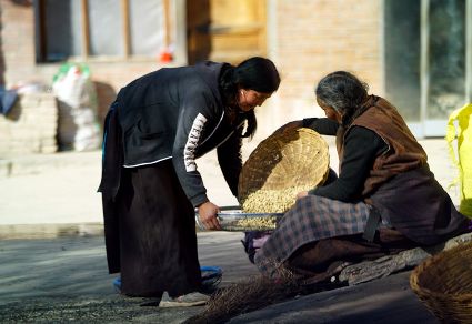 一群孩子會(huì)準(zhǔn)時(shí)來(lái)小二樓叫我,要去密林,要去山岡,要去尋找?guī)в薪?jīng)文的瑪尼石,還要去那個(gè)神秘的洞頂。比孩子們更準(zhǔn)時(shí)的是掛在小二樓上的四個(gè)大喇叭,鳥雀剛醒來(lái),廣播就開始了,就必須要起來(lái)了。穿過(guò)巷道,和打豆子的人們一起享受勞動(dòng)的幸福。我們?cè)谝黄?,等待著下午的廣播,因?yàn)閺V播會(huì)給我們帶來(lái)無(wú)盡的喜悅。