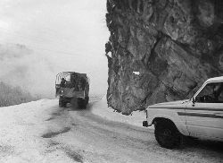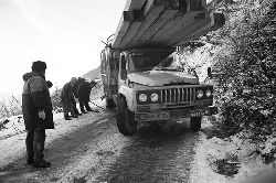 一九九七年十一月二十四日,連續(xù)多日大雪,把整個二郎山裹得嚴(yán)嚴(yán)實(shí)實(shí),白茫茫一片。陣陣山風(fēng)吹過,大霧就像瀑布一樣,從山頂直往下翻涌傾瀉。 一大早,州交通局打冰除雪排險的干部職工就從二郎山管理站直奔山埡口。載有防滑砂的大貨車穿迷霧,繞山梁,向山頂埡口疾馳。由于氣溫太低,霧又大,車上的擋風(fēng)玻璃很快就結(jié)下了冰,路面打滑非常嚴(yán)重。前面車輛堵了起來,排險人員只好下車步行。 大霧彌漫,能見度很底,陰霾的天空又飄起了紛紛揚(yáng)揚(yáng)的雪花,剌骨的寒風(fēng)陣陣襲來,只聽見車蓬布在風(fēng)中“嗶剝”作響,卻看不見前面到底堵了多少車。排險人員只好相互攙扶踩著冰滑的邊路艱難地向行。好不容易來到堵在最前面的車子面前。原來是一輛載著原木的東風(fēng)牌大貨車側(cè)滑在公路上,把整個公路堵死了。 局領(lǐng)導(dǎo)當(dāng)即指揮大家用鋼釬、鐵鎬和鋤頭處理冰道,沒有撮箕,大家借來加水桶裝運(yùn)冰雪……氣溫仍在急劇下降,剛從雪堆里刨出來的路,又被結(jié)起一層冰,就像地面上澆上了油,這就是冰雪道上有名的“桐油凌”。 有二位老同志不顧年老體弱,積極參與打冰除雪,一個在打冰時,被彈起的冰碴把腦門劃了一個口子,鮮血直往外冒。有人想幫他包扎,他堅決不干,自己就用手帕按住,把帽子向下拉蓋住傷口就算了。血從手帕中浸透出來,與眉毛上的冰凌結(jié)在一起。氣溫太低,冰層太厚,十字鎬每挖一下,多數(shù)情況下也就是挖下一個白點(diǎn)而已。不一會兒,另一位老同志已是滿頭大汗,大家勸他休息一下,他卻說:趁著現(xiàn)在雪不是太大,早點(diǎn)把主道上的冰雪多除點(diǎn),過往二郎山的車輛就多一份安全。 排險人員的手凍紅了,刨冰雪碰傷的指頭還流著鮮血,身上蒸發(fā)的熱氣,把衣領(lǐng)口、袖子口和褲子口結(jié)成了冰,可是,誰也沒有吭一聲。 ……受堵車輛終于向前開動了。 風(fēng),越刮越猛,雪,越來越大。 防滑車在冰雪道上艱難地向前爬行著,車箱上面的職工們揮舞的洋鏟向路面撒著防滑砂。一路上風(fēng)絞雪,防滑車象一頭不聽使喚的牛,顛簸、亂竄,好不容易才來到260(二郎山最險處),對這里“桐油凌”路面進(jìn)行重點(diǎn)防滑處理后,防滑車又返回來,開始向山頂進(jìn)發(fā)……風(fēng)雪二郎山上打冰除雪、防滑排險,看似沒有驚天動地的壯舉,身臨其景才知其艱難辛苦。難怪當(dāng)年每每經(jīng)過二郎山冰天雪地奇險路段的車,都會向風(fēng)雪中屹立路邊的交通系統(tǒng)排險保暢通的職工們鳴笛致敬,風(fēng)雪中的那份情彌足珍貴。 川藏線上的老司機(jī)傳下來一首傷心的順口溜:“車過二郎山,如闖鬼門關(guān),萬幸不翻車,也要凍三天!”其險峻實(shí)為罕見,尤其是途經(jīng)二郎山260(公路公樁)處,曾被淡虎色變的人稱為“鬼招手”的險路段。 1983年1月3日,有著安全行車44萬公里記錄的一位駕駛員開著輛嶄新的東風(fēng)牌貨車,同行還有兩名職工,夜行二郎山,在彌天大霧中神秘地“失蹤”了。十五天后,搜山的人才用望遠(yuǎn)鏡看到260公里路樁處的山崖下,有一塊汽車破篷布掛在樹枝,猶如招魂的凄厲幌幡在冷風(fēng)中招搖晃動。鋼纜繩吊著搜山的人下到崖下400米深處的谷底。扒開一座座雪堆,叫人汗毛倒豎:雪堆下,盡是廢大梁、爛車廂、銹車頭和支離破碎的汽車,足有一個汽車連!一輛不知埋了多久的卡車廂里牛肉已腐爛,駕駛室里坐著三具發(fā)黑的僵尸……其狀慘不忍睹!