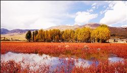 蔚藍蔚藍的天空飄著幾朵淡淡的白云,天空是那么近,仿佛你伸手可觸。一出縣城,你可以看到世界上海拔最高、面積最大的人造青楊林,這兒的海拔是三千七百多米,農業(yè)學家認為海拔4000米是不能生長農作物的,可是這里照樣是郁郁蔥蔥,到處是風里閃爍的青楊樹,映著灘寬水淺的小河,炊煙裊裊的藏房,潔白豐滿的佛塔,還有色拉村的晨霧,好一派迷人的美景……