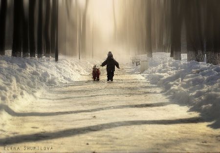 兩個(gè)毫不知情的小男孩兒無疑為這種電影畫面般精美的風(fēng)景上添上了最美的一筆。無論是在一條泥濘的小路,還是陰冷的森林,或是在室內(nèi)。Elena捕捉到了那束最完美的光線,正巧照射在小男孩兒的身上,如陰雨天突 然出現(xiàn)的太陽(yáng),一切都變得不再陰郁而充滿陽(yáng)光。Elena說,“我比較喜歡自然光,無論是在室內(nèi)還是室外,我喜歡各種各樣的光線環(huán)境,街燈,蠟燭,煙霧, 雨天,雪天,任何一種都能給予畫面更深度的視覺沖擊與意義。