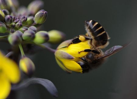 千百年來(lái),許多小宗蔬菜的傳宗接代依靠中華蜜蜂授粉。紫油菜花在初春開放,這個(gè)季節(jié)西方蜜蜂因畏寒仍在巢中被人工飼養(yǎng),只有中華蜜蜂不怕寒冷,不嫌花源稀少,只要?dú)鉁剡_(dá)到8℃,它們就出勤了。 熊小立圖文 攝于成都