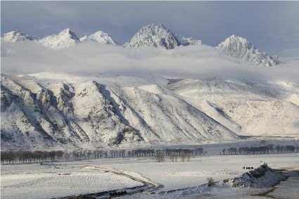 在接下來的路途中,停車休息的瞬間,一個(gè)臨水的村莊出現(xiàn)了。經(jīng)過昨夜的一場(chǎng)大雪,整個(gè)村子出人意料的“安靜”,河對(duì)岸牧民放馬的聲音,那個(gè)到河邊放下水桶汲水的女人取水的動(dòng)靜,似乎都被一場(chǎng)雪過濾了。我即使走到河邊,也難以通過耳朵和眼睛接近這一切。一幅無聲的畫面更貼近一場(chǎng)雪。我放下手中的相機(jī),似乎也在放下一些多余的東西,尊重著一種留白。
