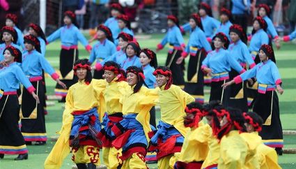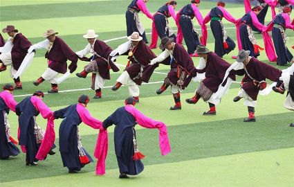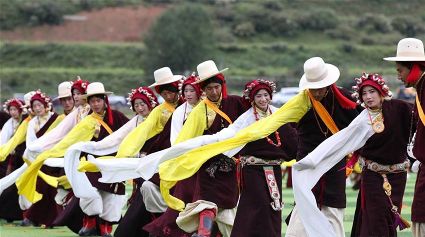 7月29日,來(lái)自四川省道孚縣各地的上萬(wàn)名藏族群眾在道孚中學(xué)載歌載舞,歡慶第三屆安巴農(nóng)耕文化旅游節(jié)。安巴在藏語(yǔ)中是五月的意思,藏歷五月正值農(nóng)閑時(shí)期,藏族群眾都會(huì)舉行各種活動(dòng),祈禱風(fēng)調(diào)雨順,吉祥平安。