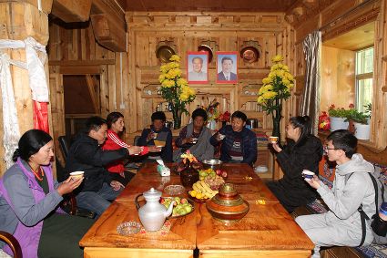 走進(jìn)巨龍鄉(xiāng)然央村,傳統(tǒng)藏房依山而建,巨龍河水悄悄流過。曾經(jīng)泥濘的土路變成平整的水泥路,藏寨房前、鄉(xiāng)間路邊種滿了鮮花,呈現(xiàn)出嶄新的藏家田園風(fēng)光。近年來,然央村按照全域旅游帶動全面發(fā)展的要求,鋪設(shè)入戶道路、改善村民居住環(huán)境、建設(shè)旅游設(shè)施、開展風(fēng)貌打造、推廣大棚蔬菜種植和家畜圈養(yǎng),真正讓群眾住上了好房子,過上了好日子。