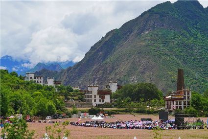 比賽開始不久,現(xiàn)場下起了小雨,但絲毫沒有影響熱烈氣氛。臺上的佳麗們,略施粉黛,穿著承載著嘉絨風(fēng)情文化的民族盛裝,自我介紹,優(yōu)雅展示。臺下,則是鄉(xiāng)民齊聚,熱情高漲。大家紛紛到場,為佳麗們加油助威。據(jù)介紹,丹巴出美女始于漢代的東女國時期。古時每年農(nóng)作物收獲的時節(jié),丹巴各村各寨都要舉行盛大的選美和祭祀活動。