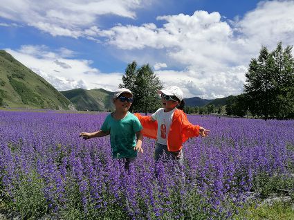 近日,記者專(zhuān)程來(lái)到新都橋鎮(zhèn),拍攝這處“攝影天堂”新增的秘境美景。從康定城區(qū)驅(qū)車(chē)沿國(guó)道318線一路前行,到新都橋鎮(zhèn)集市盡頭,右轉(zhuǎn)進(jìn)入省道215線,繼續(xù)前行2公里,在高原上從未見(jiàn)過(guò)的紫色花海便映入眼簾。藍(lán)天白云下,遍地的薰衣草花蕾燦然綻放,迎著陽(yáng)光泛出夢(mèng)一般的紫色,在稍感涼爽的陣陣微風(fēng)中,如海浪一般搖曳生姿,散發(fā)出一種沁人心脾的芬芳,交織成最一幅醉人的畫(huà)卷。夢(mèng)境般的極致美景讓記者瞬間沉醉,游人們也迫不及待地踏進(jìn)了花田間阡陌交錯(cuò)的小路,在花的海洋里嬉戲游玩,盡情拍照。