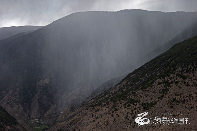 在神山腳下,佛教徒放生的一些山羊和游客親密無(wú)間。山區(qū)氣候多變,一場(chǎng)大雨突如其來(lái)。