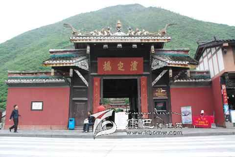 瀘定橋始建于清康熙44年 (1705年),次年五月竣工,康熙御筆題名“瀘定橋”。橋身共由13根鐵鏈組成,其中底鏈九根,扶手四根。橋東西兩端各有橋臺(tái)一座,西端觀音閣下有康熙題寫之《瀘定橋》石碑,橋東有《御制瀘定橋碑記》,瀘定橋是大渡河上第一座穩(wěn)固的大鐵索橋。1935年中國(guó)工農(nóng)紅軍晝夜行軍240里,英勇飛奪瀘定橋,打開了北上抗日的通道,“十三根鐵鏈托起了一個(gè)共和國(guó)”,毛澤東同志為此寫下了“大渡橋橫鐵索寒”的壯麗詩句,瀘定橋自此名揚(yáng)四海,成為中國(guó)紅色第一橋。為紀(jì)念紅軍飛奪瀘定橋這一壯舉和奇跡,于1985年在沙壩建立了“紅軍飛奪瀘定橋紀(jì)念館”和紀(jì)念碑。紅軍飛奪瀘定橋紀(jì)念碑由鄧小平同志題寫碑名,聶榮臻元帥題寫碑文。紅軍飛奪瀘定橋紀(jì)念館收集了紅軍飛奪瀘定橋時(shí)用過的門板、槍、炮、紅軍的旗幟、文件箱、信件證明、標(biāo)語、戰(zhàn)報(bào)、手雷、馬刀等珍貴文物110余件以及177幅歷史照片。瀘定橋是全國(guó)首批重點(diǎn)文物保護(hù)單位,是國(guó)家重點(diǎn)培育的 “紅色旅游區(qū)”、重點(diǎn)組織規(guī)劃的 “紅色旅游精品線路”和重點(diǎn)建設(shè)的 “紅色旅游經(jīng)典景區(qū)”。