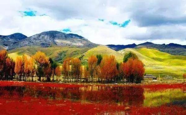 秋季,是稻城亞丁最具有詩意的季節(jié)。火紅、金黃、碧藍是自然這位大藝術家收藏已久最珍貴的顏料,這瞬間被洋洋灑灑潑灑在這天地之間。無論從什么角度看,取景框永遠是一幅美麗的畫面。