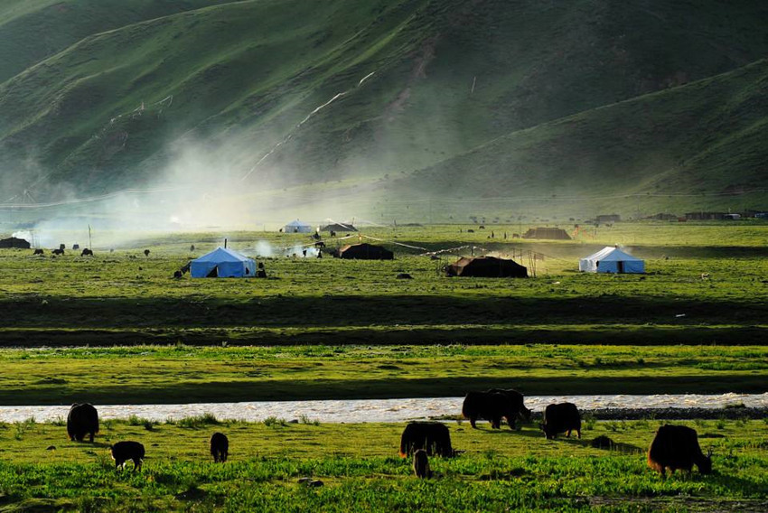 觀音鎮(zhèn)下住了一晚,第二天很早就出發(fā)去色達。