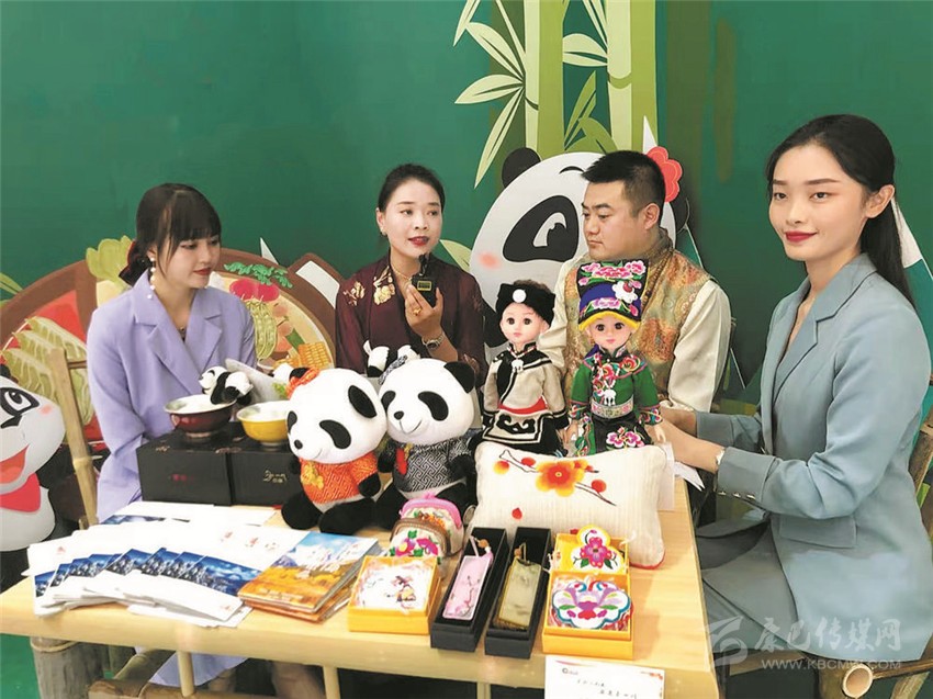 在四川館“熊貓小屋”直播間,康定市文廣旅局工作人員正在作現(xiàn)場推介。