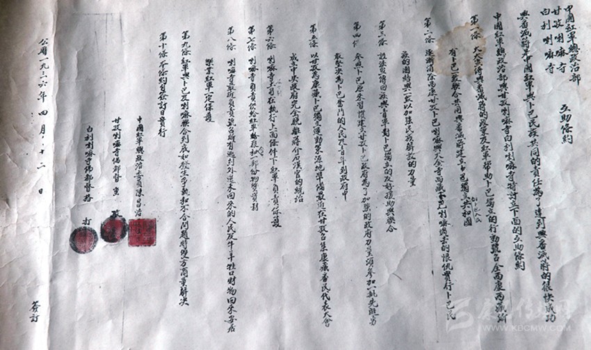 紅軍與白利寺、甘孜寺簽訂的《互