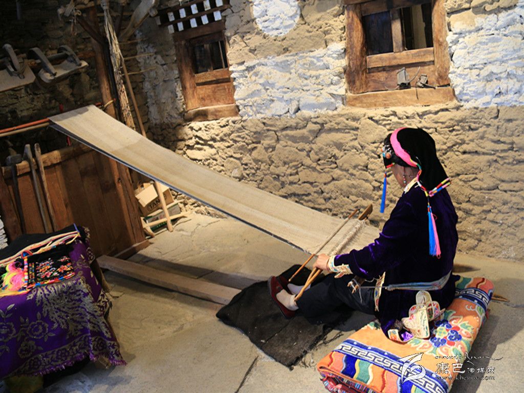 穿過古樸的大門,步入館中,映入眼簾的是古老的民間紡織技藝。一位藏族老阿媽端坐在古董般的織布機前,聚精會神地編織布匹,見到游人微笑回應(yīng),并未停下她手上的工作。年逾60的擁天秀,從十幾歲便學(xué)習(xí)織布,此間從未間斷。隨著紡織機逐漸被淘汰,擁天秀已成為傳承這門古老技藝的“活化石”。非遺展示館開館時,擁天秀主動表示,愿在此地免費為游客展示丹巴紡織技藝。 “我喜歡丹巴刺繡和紡織工藝,平時在家里也會做,現(xiàn)在眼睛不很好,所以刺繡沒有辦法做了。游客們很喜歡在這里看我織布,他們有什么問題,我都會給他們講解。”古老的嘉絨紡織技術(shù),通過擁天秀的雙手,漸漸被人們熟知,無數(shù)張游人與她的合影也被傳至網(wǎng)絡(luò)。經(jīng)她現(xiàn)場紡織,價值600元一匹的純手工布銷量也節(jié)節(jié)攀升,擁天秀研習(xí)多年的手工活在展示館中終于有了“用武之地”。