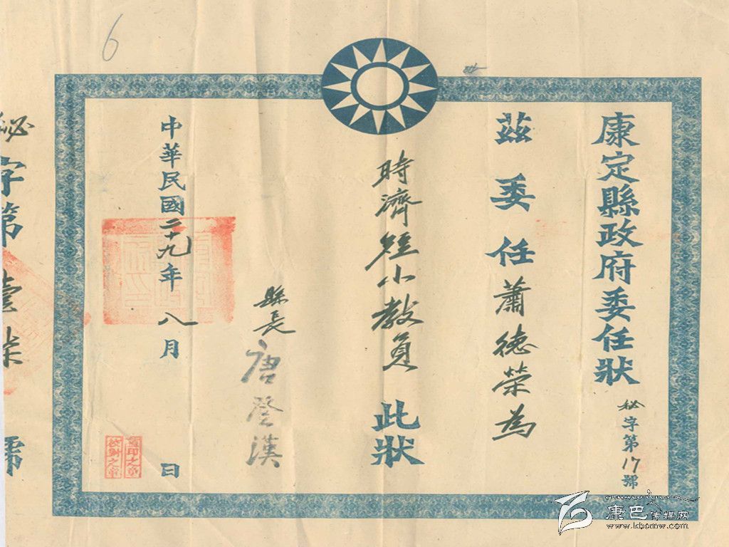 當(dāng)局發(fā)給教師的委任書。