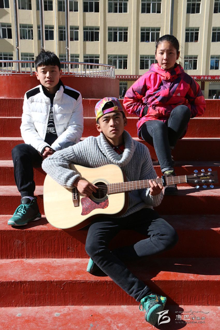 “白云下一座溜溜的城/聽著溜溜的歌聲/李家那溜溜的大姐喲/溜溜愛上藏家大哥喲/尋夢(mèng)在溜溜的跑馬山/我推著金桶溜溜轉(zhuǎn)/折多河溜溜穿城過(guò)喲/頌經(jīng)聲溜溜的傳承喲/悠揚(yáng)琴聲在溜溜小城/我溜溜等待著愛人/跑馬山龍打溜溜撒喲/心就在溜溜城中活……”最近一首名叫《溜溜》的歌曲刷爆了記者的朋友圈,不到一天的時(shí)間點(diǎn)擊率達(dá)到12000多,干凈的嗓音碰上吉他、貝斯等流行元素,給聽眾帶了一種不同的音樂(lè)享受?!读锪铩返脑~曲作者周麒(當(dāng)然他也是原唱之一)和主唱昂汪央金拉姆、周楠都是來(lái)自康定中學(xué)的學(xué)生,在冬日的午后,記者在康定中學(xué)的籃球場(chǎng)見到了這三位一臉天真的原創(chuàng)者。初見記者,他們還有一些靦腆、緊張,但是一談到音樂(lè),他們立刻有了說(shuō)不完的話。
