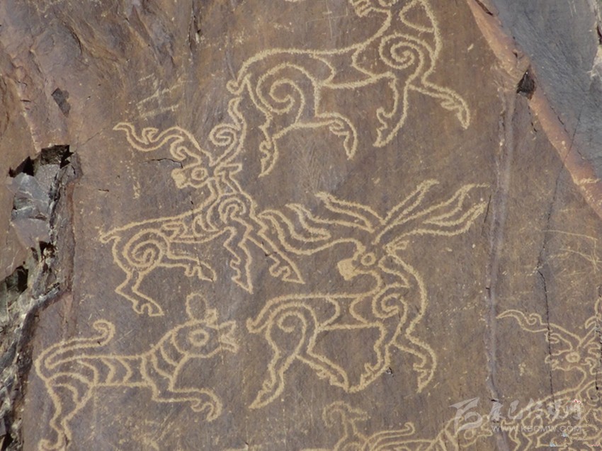 西藏阿里任姆棟巖畫(新石器時(shí)代)。