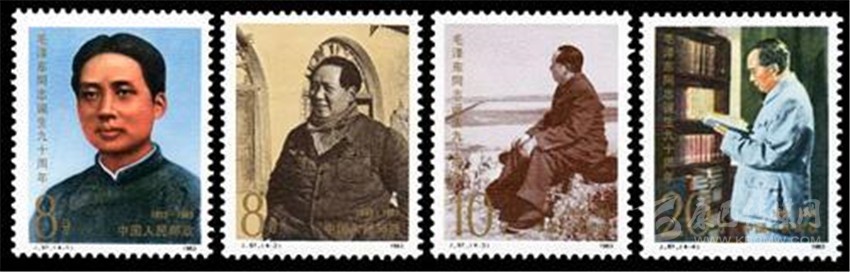 我國從1983年開始,郵政部門開始每“逢十”發(fā)行毛澤東誕辰紀念郵票,至今已發(fā)行了四套共15枚,其中小型張1枚。方寸之間生動的再現(xiàn)了毛澤東光彩照人的偉人風采。