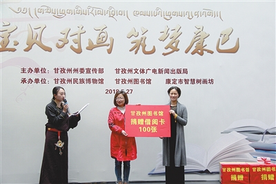 在“推動(dòng)全民閱讀,建設(shè)書香甘孜”贈(zèng)書環(huán)節(jié),州圖書館向康定市智慧樹畫坊贈(zèng)送了圖書和借閱卡?!百?zèng)書活動(dòng)不僅讓孩子們有更多的課外書看,培養(yǎng)他們讀好書、好讀書的習(xí)慣,還讓他們有機(jī)會(huì)學(xué)習(xí)‘贈(zèng)人玫瑰,手留余香’的美德,這是給孩子們最有意義的‘六一’禮物?!币晃粎⑴c活動(dòng)的家長由衷贊嘆。