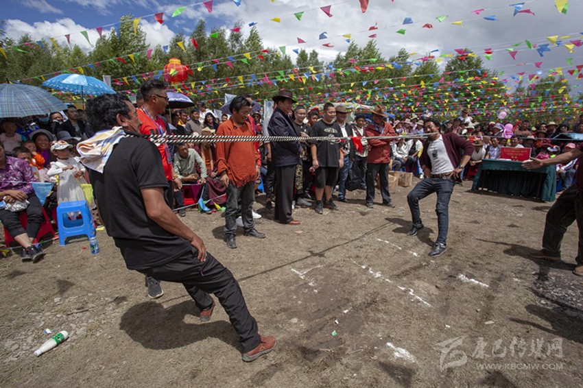 除以上活動,滾桶接力、俯撐馬鞍吃葡萄、穿藏裝揉糌粑、套牛角等趣味比賽無不展示民族體育的獨特風(fēng)格?!斑@種拔河還是第一次見,很有意思。”其中,“格吞”比賽(把帶子套在脖子上拔河)深得觀眾喜愛。
