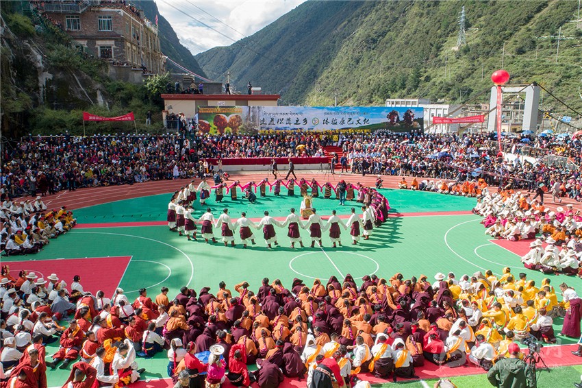 9月12日一早,雅江縣中學(xué)體育場(chǎng)內(nèi)人頭攢動(dòng)、座無(wú)虛席,一場(chǎng)由15支鍋莊隊(duì)聯(lián)合表演的“千人鍋莊”為主要載體的開幕式演出在萬(wàn)眾期待中,將康巴兒女的豪邁和熱情,展現(xiàn)得淋漓盡致。