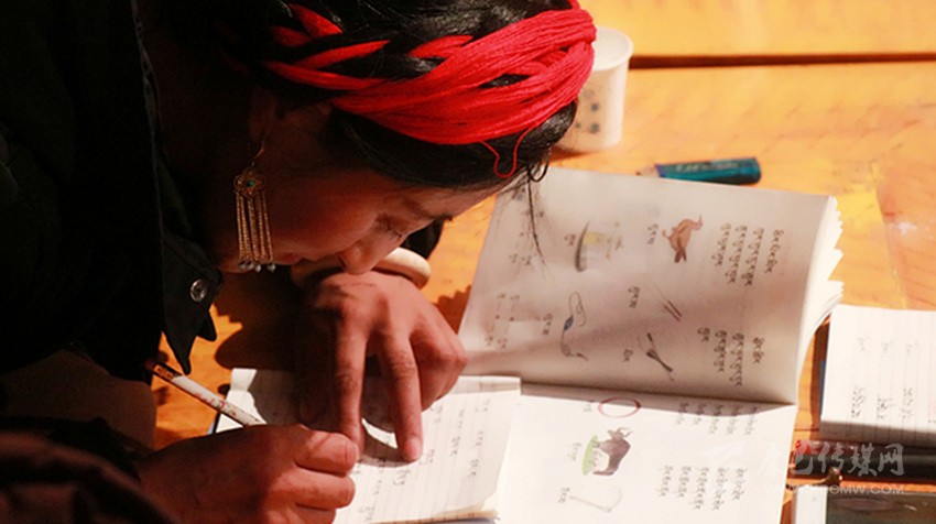 驅(qū)車回老家過新年,天已黑,推開家門,哇!我簡直不能相信自己的眼睛,我的家人都捧著書本在學(xué)習(xí),有的在背誦,有的在書寫。最令我感動(dòng)的是我媽媽,她拿著手電筒照著書本上的最基礎(chǔ)的藏文字母默讀。我情不自禁地豎起拇指朝他們嘖嘖稱贊。媽媽說:“我是學(xué)前教育班的,你姐姐她們已有三年級(jí)的文化。木雅溝的村民都在夜校學(xué)習(xí),這趟你怕是找不到玩伴了?!?/p>