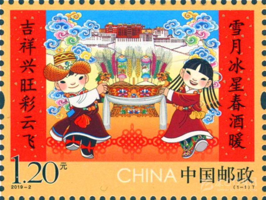 彰顯中華民族特有人情味的拜年郵票。拜年是我國春節(jié)的主要習(xí)俗,是中華民族優(yōu)秀的傳統(tǒng)文化,是人與人之間情感凝聚和維系的重要禮節(jié),具有獨特人情味。中國郵政從2015年至2019年連續(xù)發(fā)行了五組“拜年”系列郵票。2015年中國郵政發(fā)行的第一組《拜年》郵票,以其獨特的卡通風(fēng)格和濃郁的民俗特色,展現(xiàn)了人們過大年,拜大年時的喜悅場景。2018年正好是廣西壯族自治區(qū)成立六十周年,中國郵政發(fā)行 《拜年》郵票,畫面展現(xiàn)了壯家人過年時熱情好客的場景,桌子上擺放著柚子、香蕉、五色飯等當(dāng)?shù)靥厣褪澄?,打開的石榴籽粒飽滿、顆顆相抱,正如我國56個民族緊密團結(jié)在一起,形象貼切地體現(xiàn)了習(xí)近平總書記提出的“各民族要像石榴籽那樣緊緊抱在一起”的教導(dǎo)。 2019年春節(jié)恰逢與藏歷新年同一天,中國郵政發(fā)行的《拜年》郵票,郵票主圖畫面上“歡歡”與“喜喜”兩名藏族兒童,身穿藏族的盛裝,在布達(dá)拉宮前載歌載舞,整個畫面展現(xiàn)了藏族同胞歡快愉悅,喜慶新年的畫面,同時也表達(dá)了全國各族人民在黨的領(lǐng)導(dǎo)下,幸福生活,共筑中國夢的美好寓意。