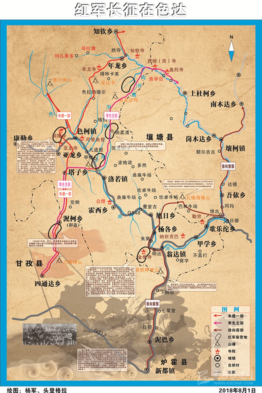 紅軍在色達長征路線圖。 頭登格拉 供圖