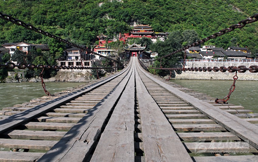 手握粗大烏黑的鐵鏈,感覺得到它的滄桑歷史與厚重沉淀,當(dāng)年的工匠甩起膀子捶打鐵鏈時(shí)四處飛濺的火星,仿佛在眼前不停噴酒;扣住碩大亮堂的鐵環(huán),簡(jiǎn)直是在觸摸久遠(yuǎn)歲月的流失與人非物是的變故;當(dāng)年匠人舉著大手操起鐵鉗子將滾燙通紅的鐵環(huán)放入水中時(shí)發(fā)出“哧哧哧哧”的聲音似乎在耳旁久久回蕩;踩踏橋面上的板子,分明看見當(dāng)年舍死忘死的勇士們?cè)谙鯚煆椨曛匈橘肭斑M(jìn),犧牲紅軍戰(zhàn)士殷紅的鮮血染紅了大渡河的浪花;凝視滾滾翻騰的波濤,依稀可見當(dāng)年民眾將鐵鏈糸在竹筒上兩頭對(duì)拉的場(chǎng)景,眾人在兩岸使力時(shí)發(fā)出“嗨約嗨約”的吆喝聲地動(dòng)山搖震撼人心……