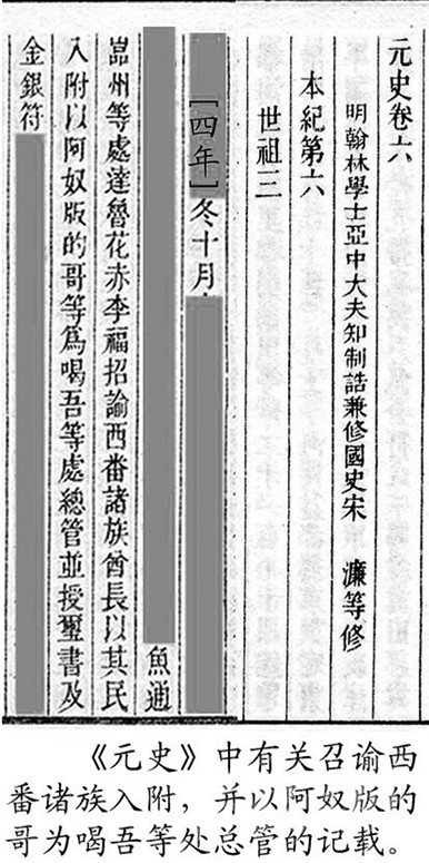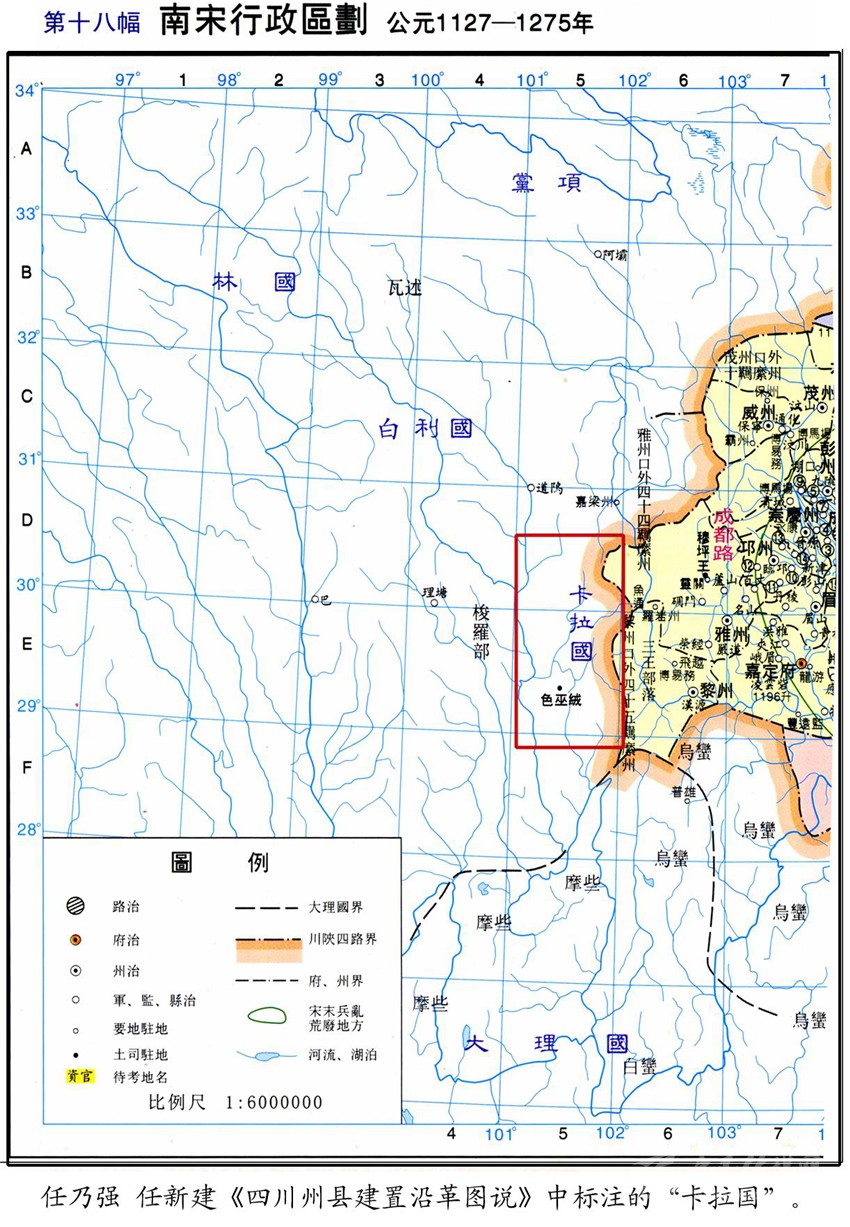 今屬康定縣的木雅,又分為上木雅和下木雅。下木雅的色烏絨地方,是木雅王曾住過的地方之一。民間又稱住在這里的王為“西吳甲布”(即“西吳王”),進而又附會出個“西吳國”來。從木雅貢嘎西邊那條叫色烏絨的山溝往南到打箭爐,正如傳說的那樣,早年一般要走三天?!对贰酚小昂任帷钡挠涊d,“喝吾”“色烏”都是藏語的音譯,藏語“絨”為山溝之意,指的就是這個色烏絨。元世祖忽必烈征滇,沿大渡河、金沙江而進,得到沿途部落首領的大力支持。長河(大渡河)西的“西吳王”自然也不例外。所以在至元四年(公元1267年)“冬十月壬戌,魚通巖州等到處達魯花赤李福,招諭西番諸族酋長以其民入附,以阿奴版的哥等為喝吾等處總管,并授璽書及金銀符。”得到蓋有皇帝大?。ㄓ癍t)文書和金銀符,朝廷正式任命為“喝吾”總管的酋長(木雅王)阿奴版的哥,之后從色烏絨遷到打煎爐,不僅成為朝廷認可的“長河西土官”,還作了“四川分省右丞”。我們是否可以判定,“木雅王”遷爐的時間應在至元四年(公元1267年)之后?1267年距今740多年,以此推算,如前文所說:今天西爐(康定城)的歷史,大約為700年!再者,若從宋代的“卡拉國”算起,說“明正”歷四十二代,不能說沒有一點來頭。