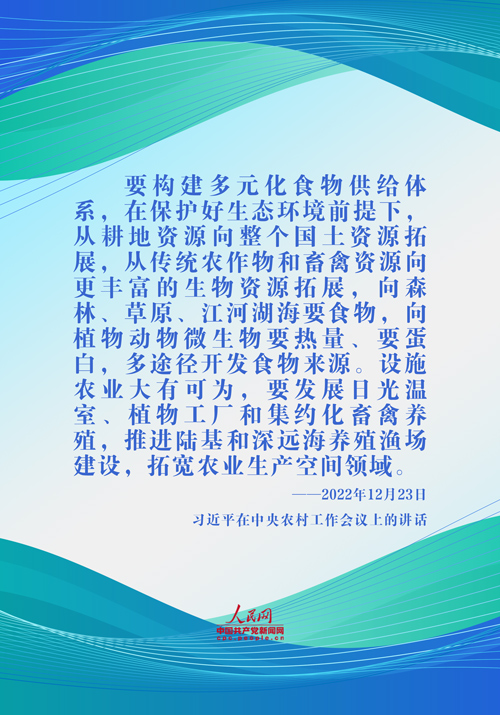 黨的十八大以來(lái),從2015年中央農(nóng)村工作會(huì)議提出“要樹(shù)立大農(nóng)業(yè)、大食物觀念”,到黨的二十大報(bào)告提出“樹(shù)立大食物觀,發(fā)展設(shè)施農(nóng)業(yè),構(gòu)建多元化食物供給體系”,再到2024年中央一號(hào)文件提出“樹(shù)立大農(nóng)業(yè)觀、大食物觀,多渠道拓展食物來(lái)源,探索構(gòu)建大食物監(jiān)測(cè)統(tǒng)計(jì)體系”,以習(xí)近平同志為核心的黨中央對(duì)大食物觀的闡釋不斷豐富和發(fā)展。