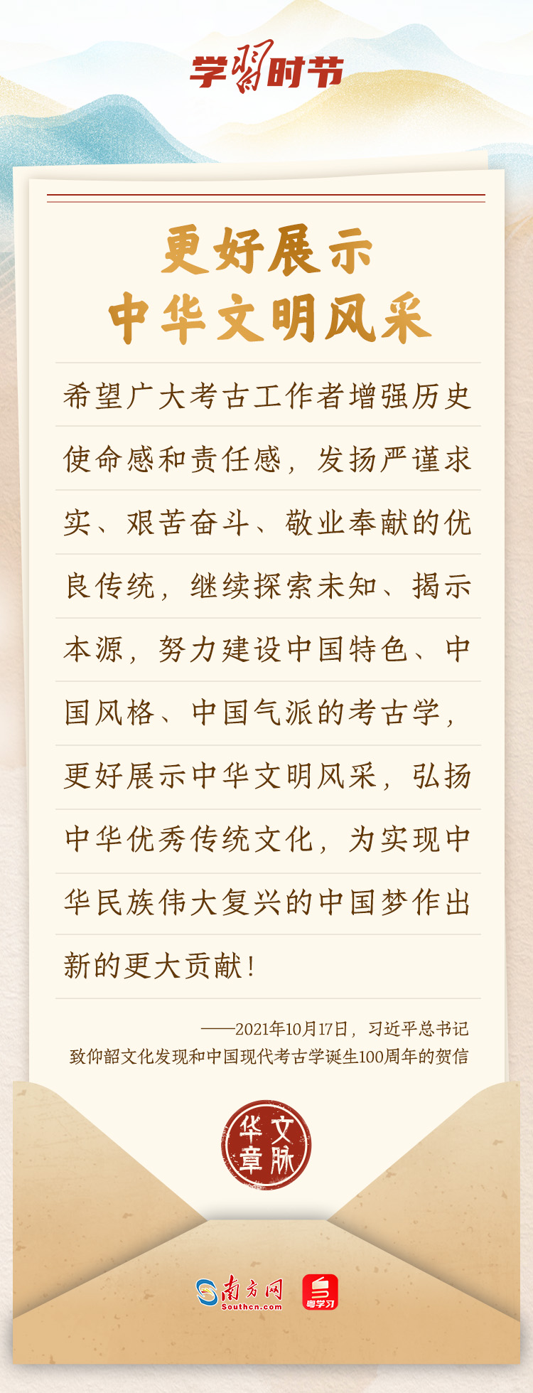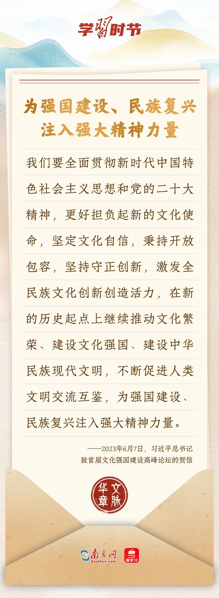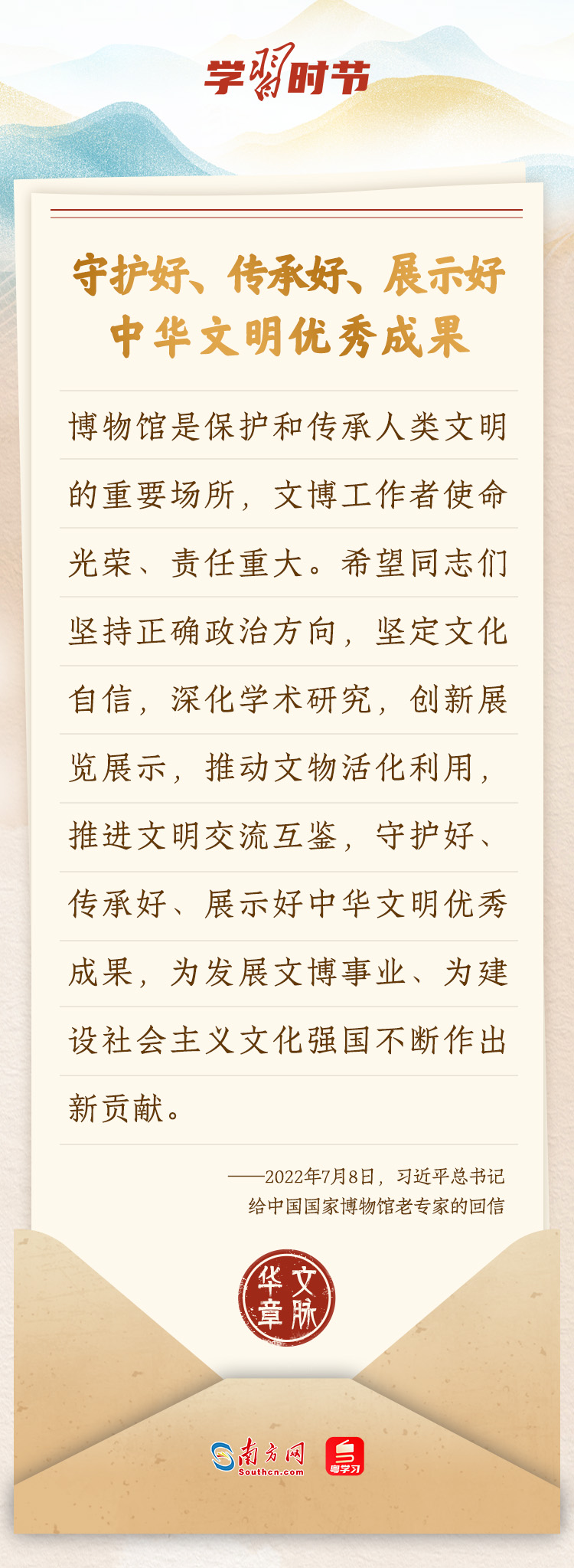 “中華民族在幾千年歷史中創(chuàng)造和延續(xù)的中華優(yōu)秀傳統(tǒng)文化,是中華民族的根和魂?!绷?xí)近平總書記多次通過(guò)發(fā)賀信、寫回信等方式,表達(dá)著對(duì)弘揚(yáng)中華優(yōu)秀傳統(tǒng)文化的殷切希望,飽含深情、字字暖心、催人奮進(jìn)。讓我們一起“讀”信。