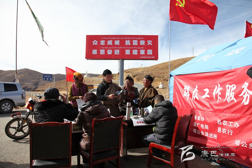 “22日晚,地震發(fā)生不久,我們便忙了起來,一邊是要統(tǒng)籌抗震救災(zāi)的前期工作,一面還要和自己的結(jié)對親戚聯(lián)系,因?yàn)榇舜蔚卣鹫鹬芯臀挥谒?zhèn)。”正在江巴村為結(jié)對親戚核查災(zāi)情的康定縣委辦干部李萍介紹說,我們縣上各機(jī)關(guān)企事業(yè)單位第一時間便組建了“黨建服務(wù)隊(duì)”。平均每天有近百人深入各村各戶,全力以赴參與查災(zāi)核災(zāi)、物資發(fā)放、安置點(diǎn)設(shè)立、救災(zāi)帳篷搭建等工作。