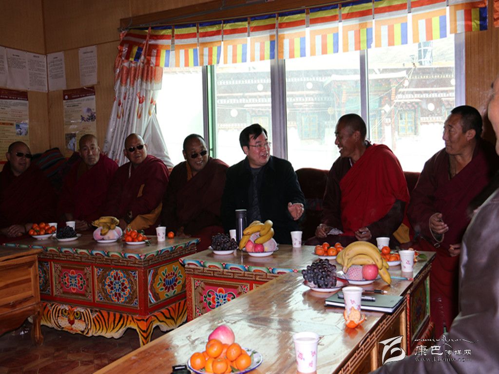 到達(dá)爐霍縣城已是中午兩點(diǎn),僅用十分鐘時(shí)間吃過午飯,胡昌升又立即趕往爐霍縣壽靈寺,看望同心同向活動(dòng)中結(jié)下深厚友誼的“老朋友”。每次到壽靈寺,胡昌升與寺管會(huì)成員都有說不完的話,有聊不完的開心事,新年就要到來,大家你一言我一語祝福2015。英巴澤仁說,希望今年“五二三”學(xué)教活動(dòng)能開展得更好。澤仁扎西說,黨的十八大提出的24字社會(huì)主義核心價(jià)值觀,字字說在我們的心里,只要把這24字落到實(shí)處,偉大中國夢(mèng)就一定會(huì)實(shí)現(xiàn)。聽完大家的發(fā)言,胡昌升十分高興,他說,希望2015年全州平安和諧、和和氣氣、和和美美、和和睦睦。
