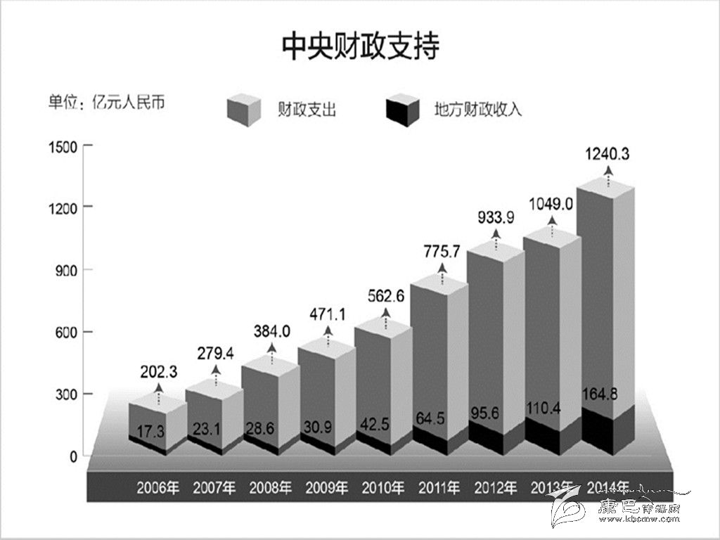 中央政府歷來高度重視西藏的發(fā)展,十分關(guān)心西藏各族人民的福祉,舉全國之力支援西藏,以優(yōu)惠的政策和強(qiáng)大的人力、物力、財力支持,推動西藏的發(fā)展進(jìn)步。從1952年到2014年,中央政府對西藏的各項財政補(bǔ)助達(dá)6480.8億元,占西藏地方公共財政支出的92.8%。1980年以來,中央先后六次召開西藏工作座談會,從中國社會主義現(xiàn)代化建設(shè)全局出發(fā),對西藏的發(fā)展建設(shè)作出整體規(guī)劃。從1994年第三次西藏工作座談會開始,中央實(shí)施對口支援西藏的政策,安排60個中央國家機(jī)關(guān)、18個省市和17家中央企業(yè)對口支援西藏。20年來,先后有七批4496名優(yōu)秀干部、1466名專業(yè)技術(shù)人才進(jìn)藏工作,實(shí)施援藏項目7615個,投入援藏資金260億元,主要用于改善民生和基礎(chǔ)設(shè)施建設(shè),為西藏經(jīng)濟(jì)社會發(fā)展作出了重要貢獻(xiàn)。