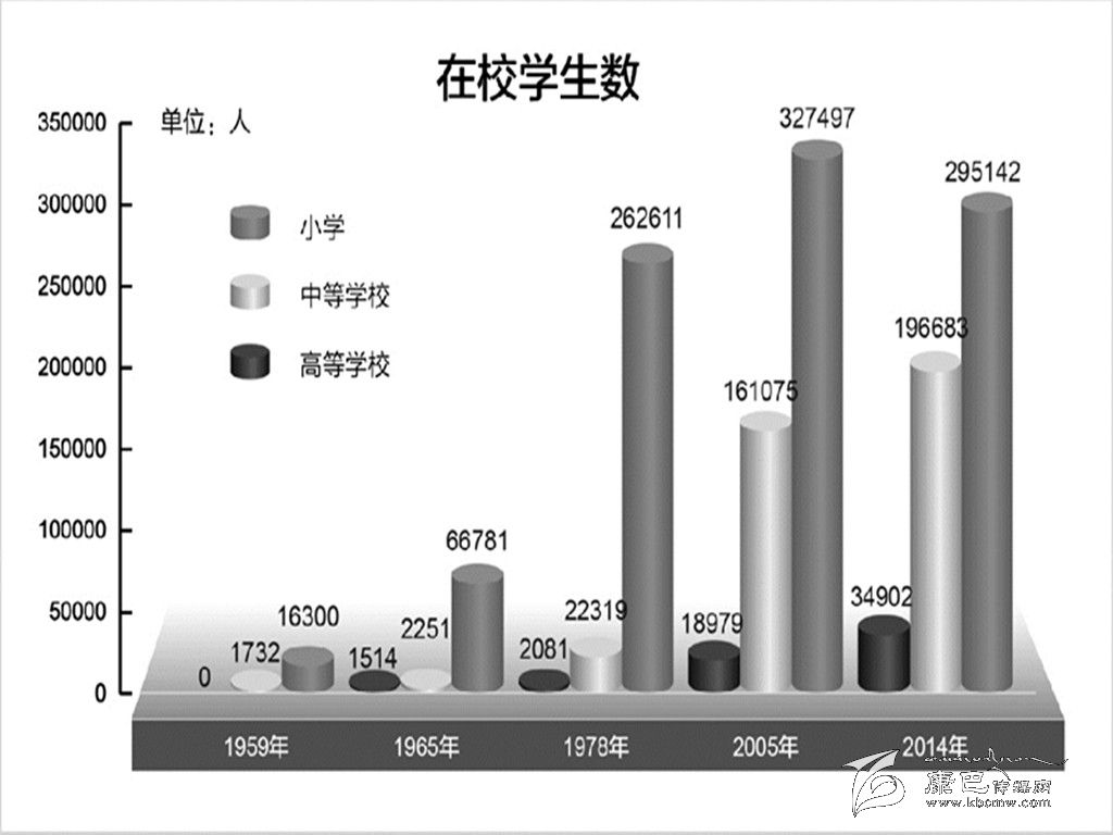 教育事業(yè)日新月異,實(shí)現(xiàn)學(xué)有所教。全區(qū)所有縣(區(qū))全面完成普及九年義務(wù)教育,一個涵蓋學(xué)前教育、基礎(chǔ)教育、職業(yè)教育、高等教育、成人教育、特殊教育的比較完整的現(xiàn)代教育體系已經(jīng)形成。實(shí)現(xiàn)了從學(xué)前到高中階段15年免費(fèi)教育,農(nóng)牧區(qū)義務(wù)教育學(xué)生營養(yǎng)改善計劃全面落實(shí),政策和資金覆蓋率均達(dá)到100%。“三包”(包吃、包住、包學(xué)習(xí)費(fèi)用)政策覆蓋學(xué)前教育到高中階段所有農(nóng)牧民子女和城鎮(zhèn)困難家庭子女,且不斷提高標(biāo)準(zhǔn),年生均標(biāo)準(zhǔn)已提高到3000元。全面啟動實(shí)施城鎮(zhèn)三年、農(nóng)牧區(qū)兩年學(xué)前雙語教育工程。2014年底,幼兒園在園幼兒達(dá)8萬多人,學(xué)前教育毛入園率達(dá)60%。2014年底,全區(qū)擁有普通高等院校6所;中等職業(yè)學(xué)校9所,在校生1.7萬人;高級中學(xué)22所,完全中學(xué)4所,初級中學(xué)93所,十二年和九年一貫制學(xué)校各3所,小學(xué)829所。小學(xué)適齡兒童入學(xué)率達(dá)到99.64%,青壯年文盲率下降至0.57%以內(nèi),人均受教育年限達(dá)到8.6年,新增勞動力受教育年限達(dá)到12年以上。1984年,中央政府作出“在內(nèi)地為西藏辦學(xué)培養(yǎng)人才”的重大戰(zhàn)略決策,現(xiàn)有21個省市辦有西藏班(校),已累計為西藏培養(yǎng)了大中專畢業(yè)生3.2萬余人。目前西藏不僅有了自己培養(yǎng)的碩士、博士,而且有了一批享譽(yù)全國的專家、學(xué)者,逐步建立了近30個科研院所,有各類專業(yè)技術(shù)人員69709人,學(xué)科領(lǐng)域涉及歷史、經(jīng)濟(jì)、人口、語言、宗教和農(nóng)業(yè)、畜牧、林業(yè)、生態(tài)、生物、藏醫(yī)藥、鹽湖、地?zé)帷⑻柲艿葦?shù)十個門類。其中,藏學(xué)、高原生態(tài)、藏醫(yī)藥等學(xué)科研究在全國處于領(lǐng)先水平,產(chǎn)生了一批有世界影響的學(xué)術(shù)成果。