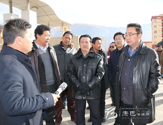 圖為李康、益西達(dá)瓦與參會(huì)人員在爐霍縣考察城市建設(shè)。