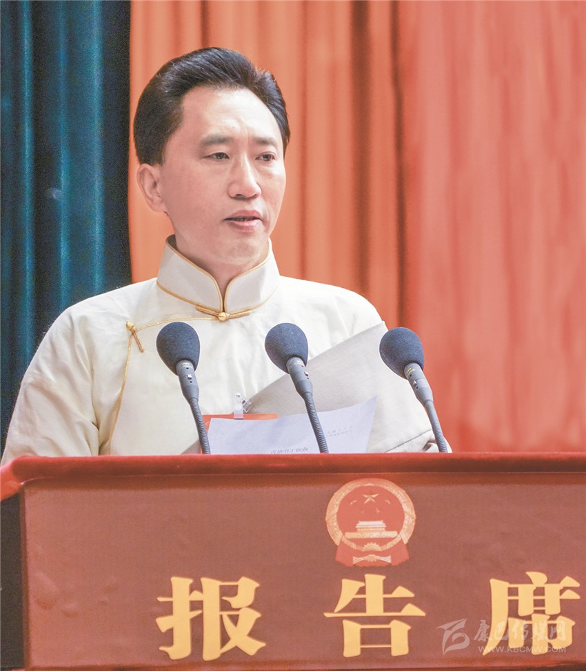 肖友才作政府工作報告。(本網(wǎng)記者 王明陽 張兵 攝)