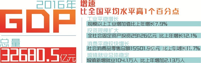 本網(wǎng)訊(記者 陳巖 梁現(xiàn)瑞 李龍俊)1月22日,省政府新聞辦召開新聞發(fā)布會(huì),發(fā)布2016年經(jīng)濟(jì)數(shù)據(jù)。經(jīng)國(guó)家統(tǒng)計(jì)局審定,2016年全省實(shí)現(xiàn)地區(qū)生產(chǎn)總值(GDP)32680.5億元,按可比價(jià)格計(jì)算比上年增長(zhǎng)7.7%,增速比全國(guó)平均水平高1個(gè)百分點(diǎn)。全省經(jīng)濟(jì)運(yùn)行呈現(xiàn)總體穩(wěn)定、穩(wěn)中有進(jìn)、穩(wěn)中有好的發(fā)展態(tài)勢(shì),實(shí)現(xiàn)“十三五”良好開局。