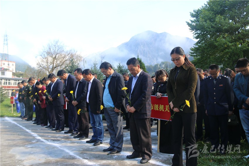國歌唱畢,全場(chǎng)肅立,向?yàn)橹袊嗣窠夥攀聵I(yè)和共和國建設(shè)事業(yè)英勇獻(xiàn)身的烈士默哀。