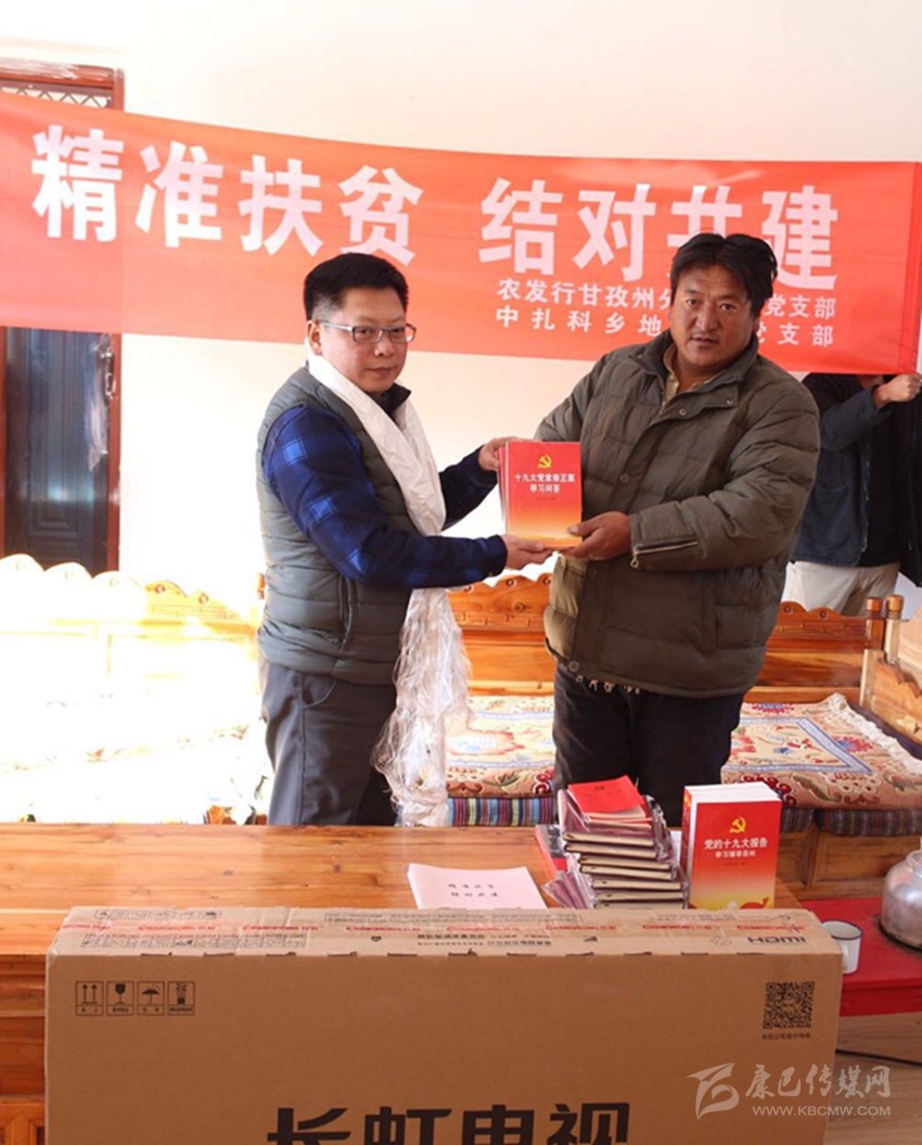 在中扎科鄉(xiāng)地龍村村級(jí)活動(dòng)室,農(nóng)發(fā)行甘孜州分行工作組結(jié)合村情和幫扶實(shí)際,為當(dāng)?shù)鼗鶎痈刹亢忘h員代表宣講黨的十九大精神,共同探討產(chǎn)業(yè)扶貧新路子,并向地龍村黨員活動(dòng)室捐贈(zèng)了 液晶電視、黨建讀物和十九大學(xué)習(xí)專用筆記等物品。希望結(jié)對(duì)村支部能切實(shí)發(fā)揮基層黨組織在農(nóng)牧民群眾中的引領(lǐng)作用,基層黨員能加強(qiáng)責(zé)任意識(shí)和使命擔(dān)當(dāng),積極深入農(nóng)牧民群眾中發(fā)揮自身優(yōu)勢和黨員先鋒模范作用,以實(shí)際行動(dòng)為群眾做出榜樣,團(tuán)結(jié)帶領(lǐng)全村群眾脫貧致富。
