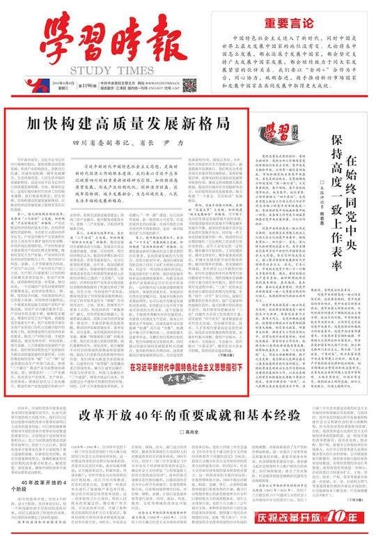 編者按:8月8日,《學(xué)習(xí)時(shí)報(bào)》頭版頭條“在習(xí)近平新時(shí)代中國(guó)特色社會(huì)主義思想指引下”欄目刊載四川省委副書記、省長(zhǎng)尹力的署名文章《加快構(gòu)建高質(zhì)量發(fā)展新格局》,本網(wǎng)今日予以轉(zhuǎn)載: