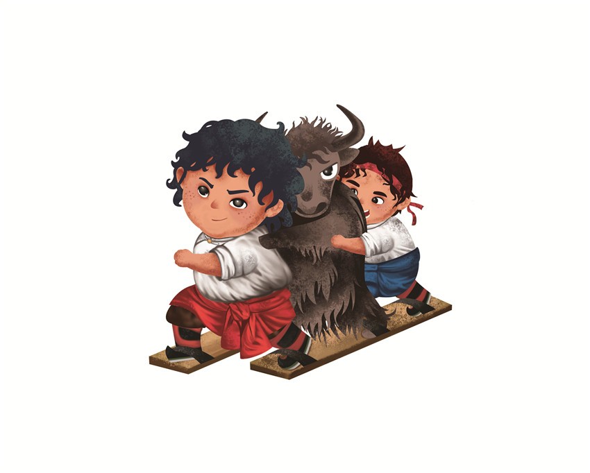 據(jù)悉,該卡通形象由康巴文化研究院設(shè)計(jì),最早出現(xiàn)在去年的環(huán)貢嘎山百公里越野挑戰(zhàn)賽上,在各國越野高手云集的賽場上,一名身著傳統(tǒng)服飾的小藏娃牽著牦牛奔跑的形象令人過目不忘。而此次省民運(yùn)會(huì)將繼續(xù)沿用“小藏娃和牦牛洛洛的形象”,康巴文化研究院組織專人設(shè)計(jì),按照既生動(dòng)可愛又準(zhǔn)確把握運(yùn)動(dòng)項(xiàng)目特征的要求,將此次運(yùn)動(dòng)會(huì)中的蹴球、陀螺、射弩、高腳競速、板鞋競速、押加、珍珠球、民族式摔跤等8個(gè)競賽項(xiàng)目以卡通形象展現(xiàn)。