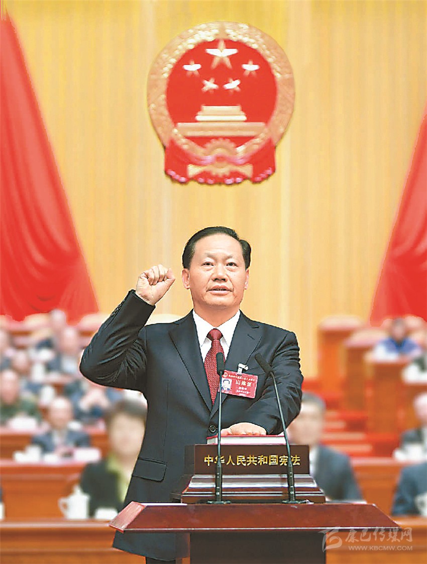 隨后,舉行憲法宣誓儀式。彭清華走上宣誓臺,左手撫按憲法,右手舉拳,面向全體人大代表莊嚴(yán)宣誓。新當(dāng)選的省十三屆人大常委會(huì)委員以及省第十三屆人民代表大會(huì)監(jiān)察和司法委員會(huì)、社會(huì)建設(shè)委員會(huì)主任委員、副主任委員、委員也進(jìn)行了憲法宣誓。