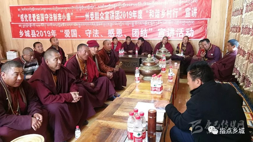 本網(wǎng)訊 4月12日,“感黨恩、愛祖國(guó)、守法制、奔小康”——州委群眾宣講團(tuán)2019年度“和諧鄉(xiāng)村行”宣講走進(jìn)鄉(xiāng)城縣熱打鄉(xiāng)和白依鄉(xiāng)丁真嶺寺。