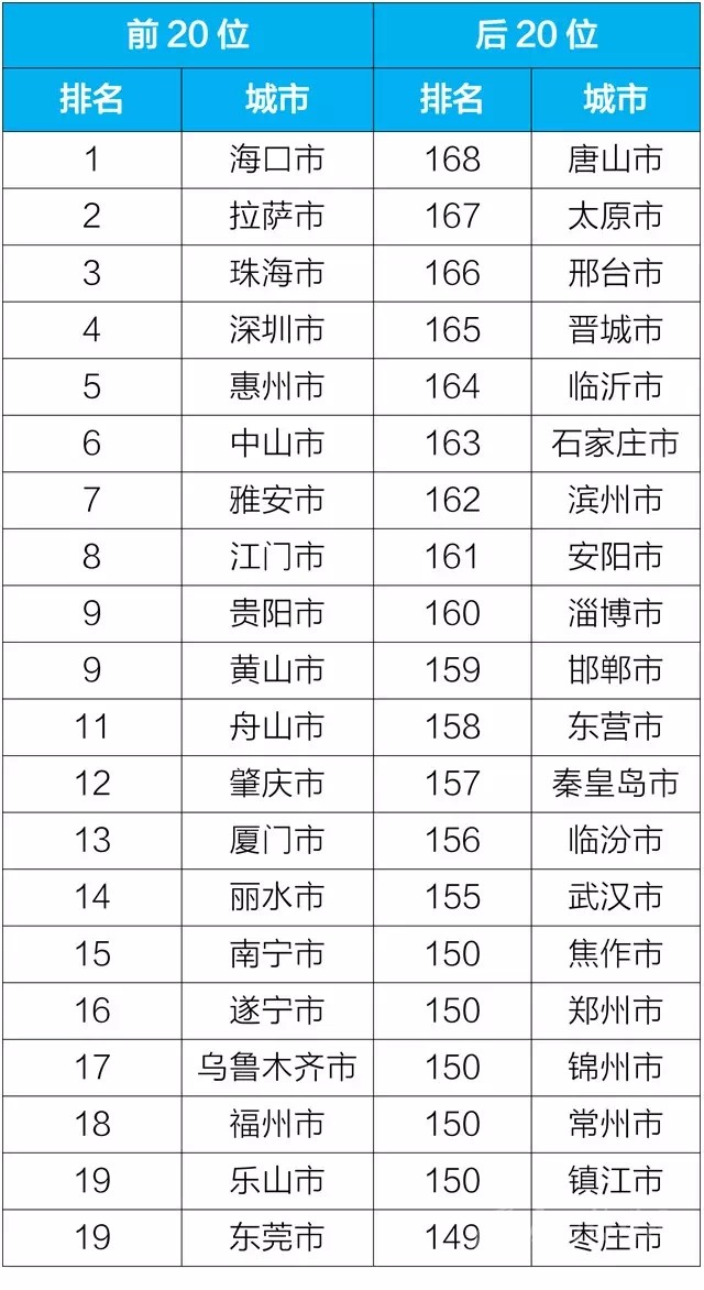 按照國務(wù)院《打贏藍天保衛(wèi)戰(zhàn)三年行動計劃》有關(guān)要求,生態(tài)環(huán)境部在原有74個重點城市空氣質(zhì)量排名基礎(chǔ)上,將排名城市范圍擴大至168個地級及以上城市,包括京津冀及周邊地區(qū)、長三角地區(qū)、汾渭平原、成渝地區(qū)、長江中游、珠三角等重點區(qū)域以及省會城市和計劃單列市。從2018年7月起,生態(tài)環(huán)境部每月發(fā)布空氣質(zhì)量相對較好的前20個城市和空氣質(zhì)量相對較差的后20個城市名單,每半年發(fā)布空氣質(zhì)量改善幅度相對較好和相對較差的20個城市名單。