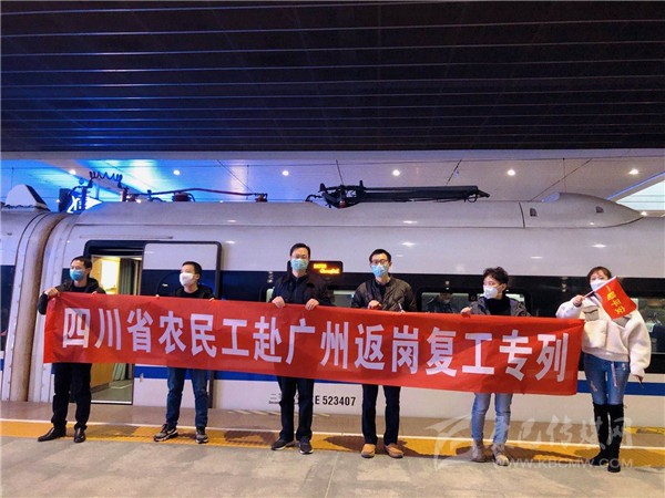 2月20日上午11:30,滿載著917名川籍農(nóng)民工的D4755次返崗專列,從成都東出發(fā)一路駛往廣州南。這是今年春節(jié)后我省首趟開往廣東省的農(nóng)民工返崗專列,也是我省與廣東在新冠病毒疫情期間勞務(wù)協(xié)作共識達(dá)成后,開行的首趟農(nóng)民工返崗專列。此次專列開行,極大滿足了疫情期間我省農(nóng)民工外出務(wù)工需求,同時(shí)也為廣東省企業(yè)復(fù)工復(fù)產(chǎn)提供了勞動(dòng)力支持。此趟專列票務(wù)費(fèi)用由廣東省人社廳承擔(dān),農(nóng)民工免費(fèi)乘坐。