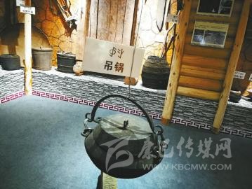 三河村村史館內(nèi)陳列的吊鍋、石磨和彝族漆器等生活用具。