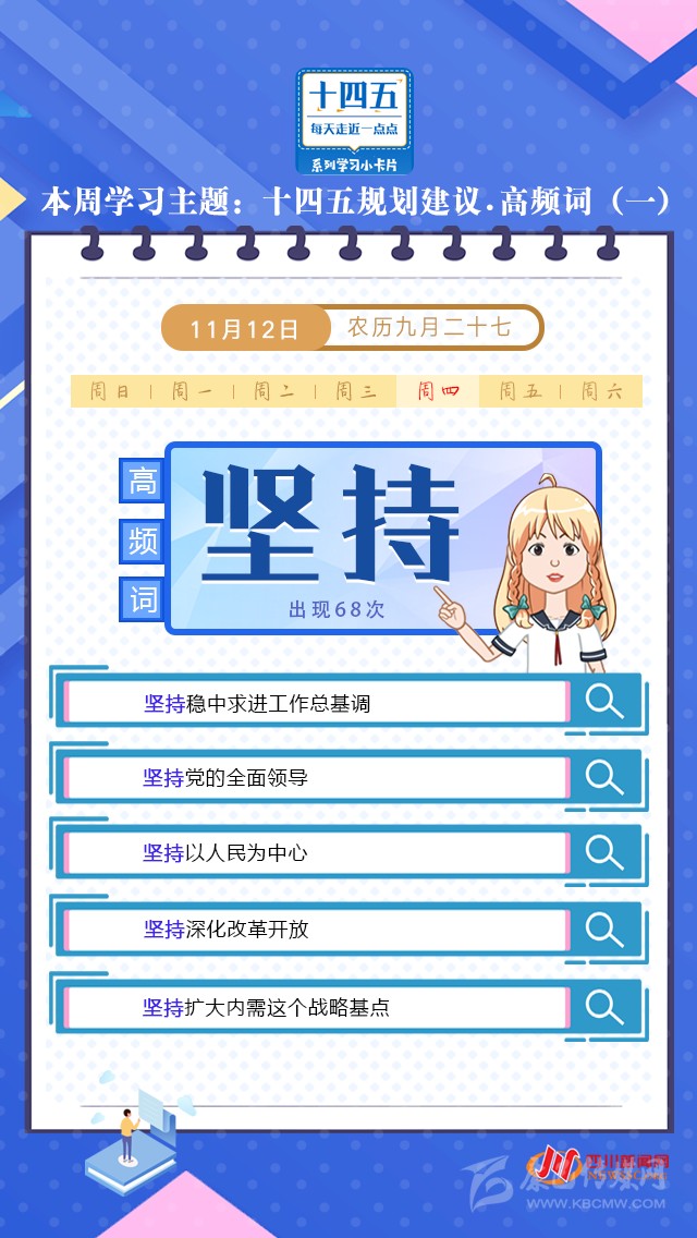本周學(xué)習(xí)主題“十四五規(guī)劃建議·高頻詞”重磅出爐,10個(gè)高頻詞帶你學(xué)習(xí)“十四五”規(guī)劃建議。今天打卡學(xué)習(xí)“十四五”規(guī)劃建議中的高頻詞:堅(jiān)持。